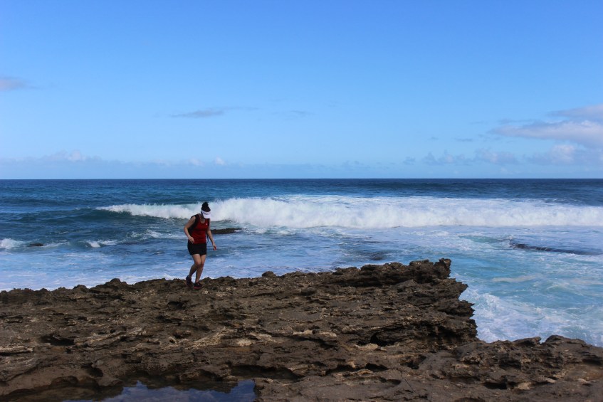 Nicole on the Rocks Published January 13, 2013 at 5184 × 3456 in Kaena Point Carefully walking on the rocks…so as to not fall.