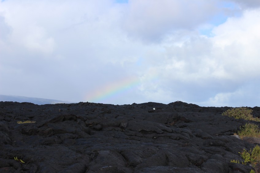 End of Chain of Craters Road 1 Published February 21, 2013 at 5184 × 3456 in The Big Island: Trip 1 – Day 3 Walking toward the end of Chain of Craters Road. The start of a rainbow over the lava field.