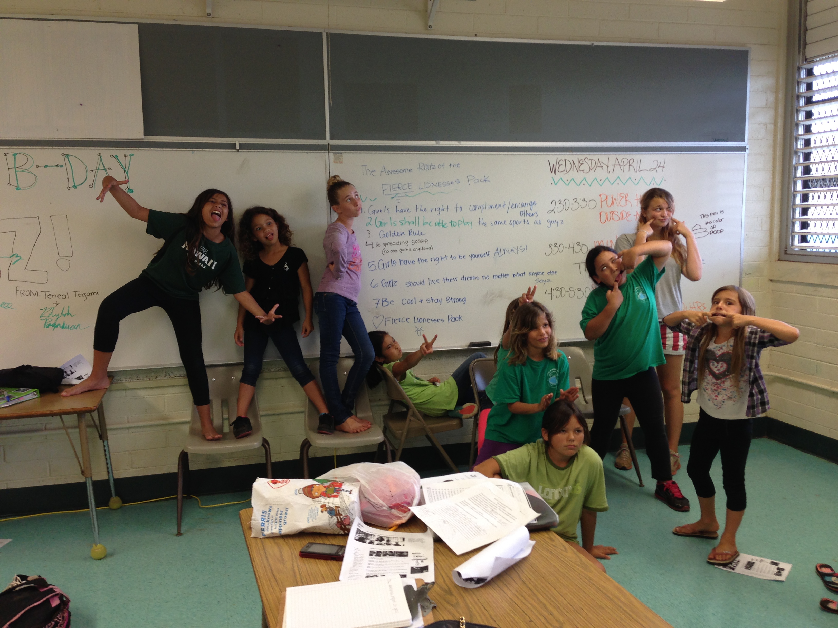 Today was the first day of our “Girls Club” with our girls at the Boys and Girls Club. Ms. Tia and are running the program to help the girls learn how to be comfortable with themselves, empower them to feel good about who they are, learn healthy habits and create positive relationships. Today we created our “The Awesome Rights of the Fierce Lioness Pack” which is the Bill of RIghts for our group. All of the girls contributed. They make me so proud! They are pictured below with the rights on the board behind them.