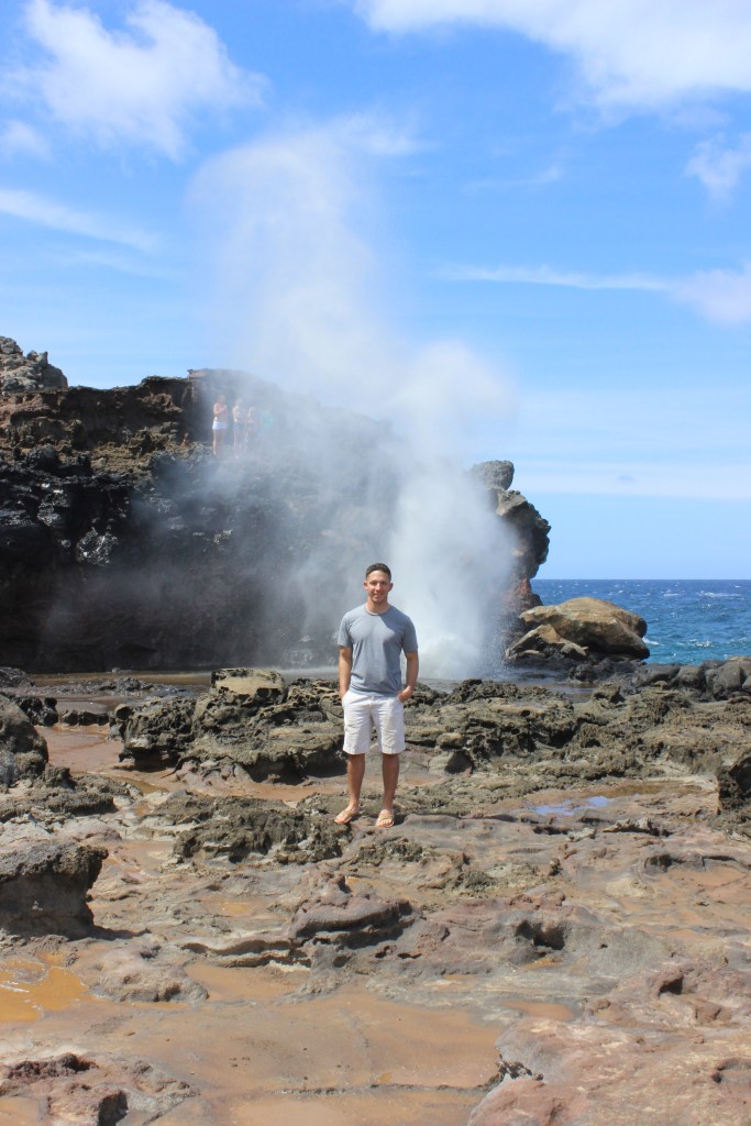 Nakalele Blowhole 5 Published May 28, 2013 at 3456 × 5184 in Maui: Trip 1 – Day 1 Josh and the blowhole in action!