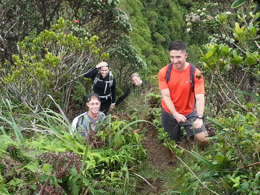 Tripler Ridge to Haiku Stairs 25 Published August 5, 2013 at 3264 × 2448 in Tripler Ridge to Haiku Stairs I think this picture is hilarious. Josh and I are both making ridiculous faces.
