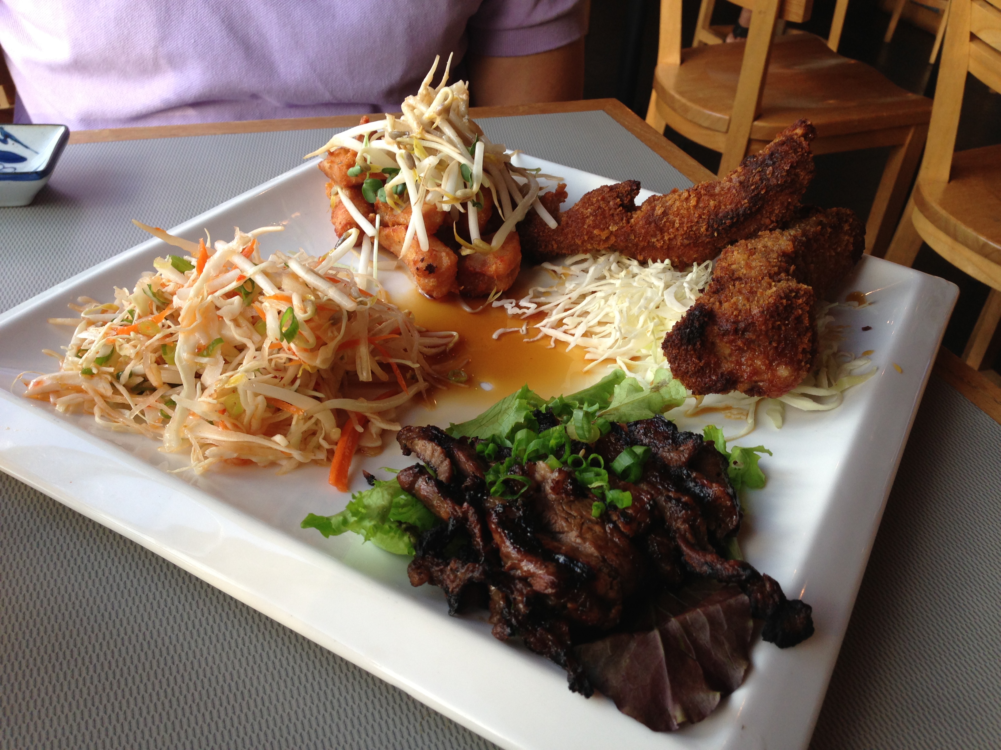 Corner Kitchen 1 Published September 28, 2013 at 3264 × 2448 in Corner Kitchen Poi Dog Platter: Kal-Bi, Crispy Crunchy Ribs and Karaage Chicken.