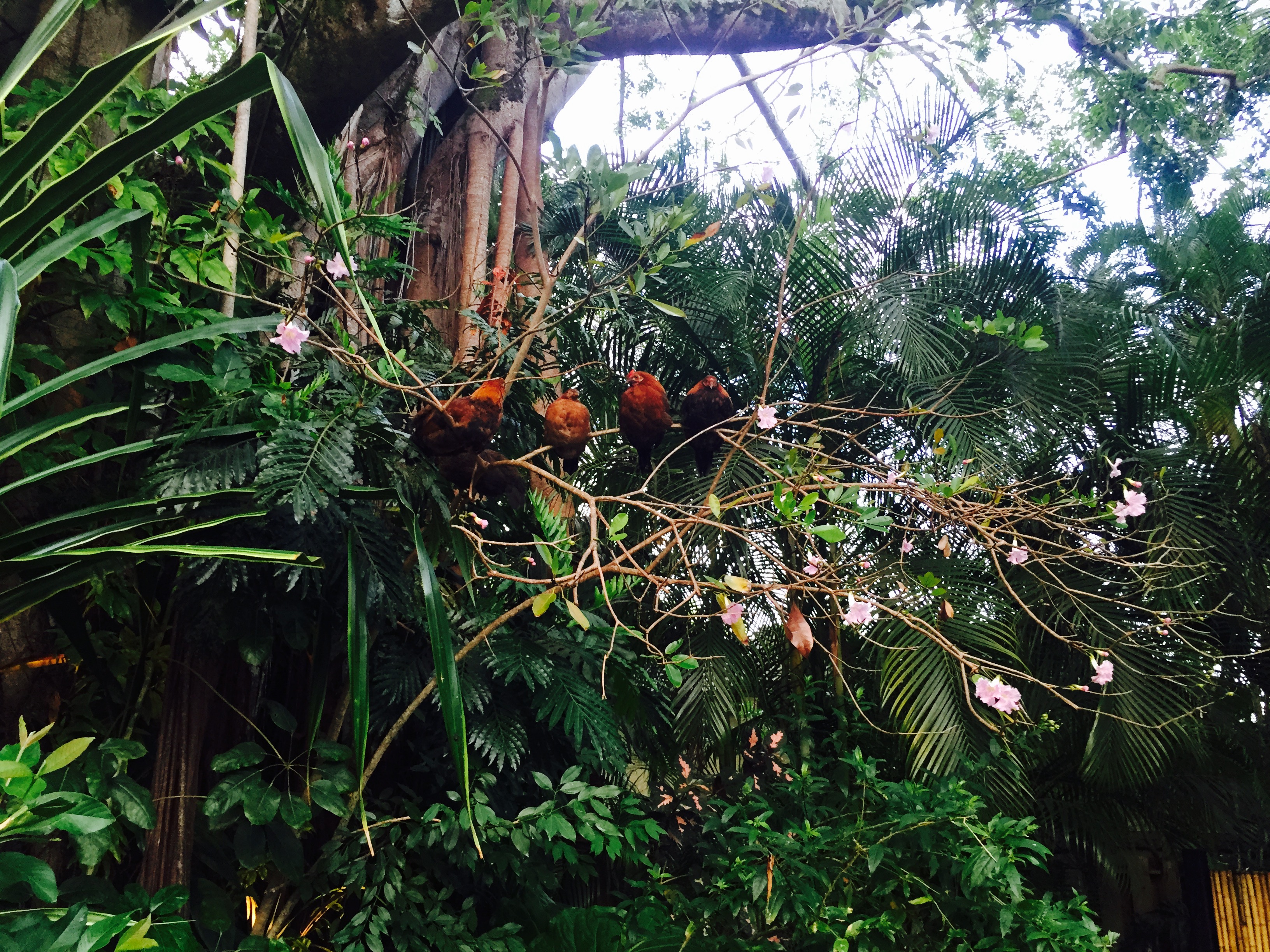 IMG_8838 Published June 3, 2015 at 3264 × 2448 in Oahu: Part 3 Chickens roosting outside the restaurant. So cute.