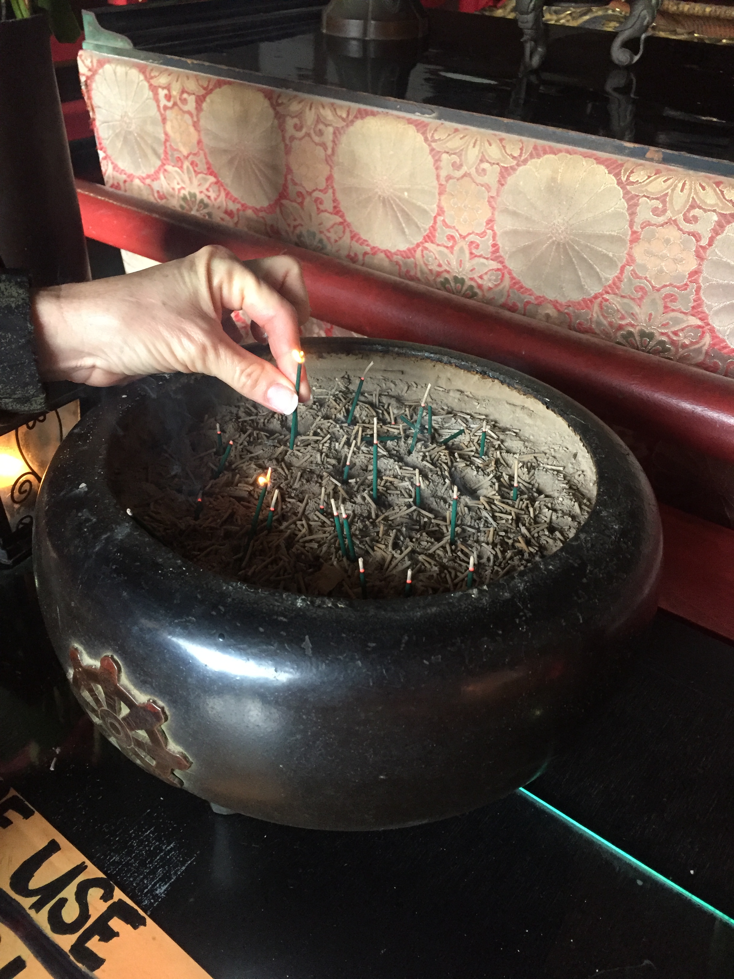 Linda lighting incense.