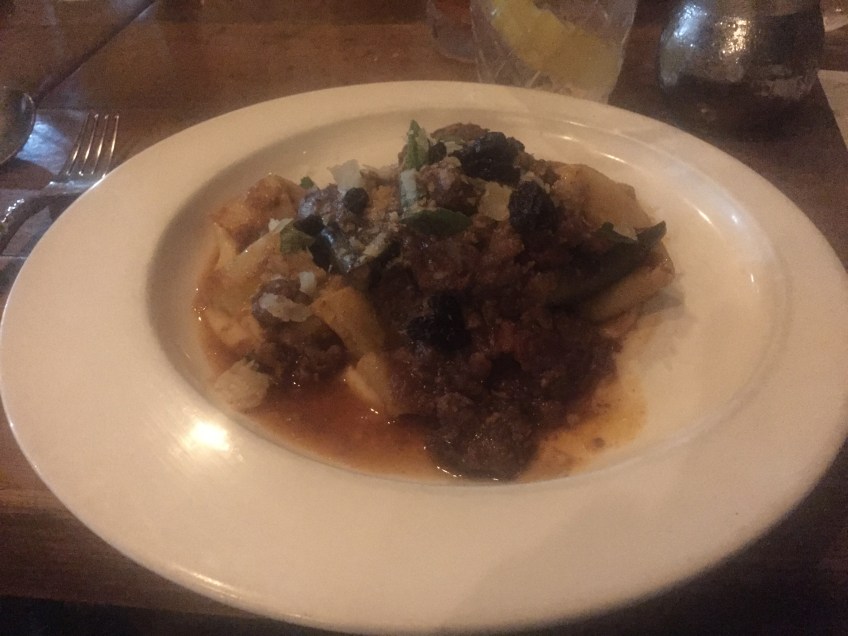 IMG_4336 Published July 15, 2018 at 3264 × 2448 in The Nook LAMB BOLOGNESE: lamb ragu, eggplant, bechamel, nutmeg, fried raisin, mint, house-made pappardelle
