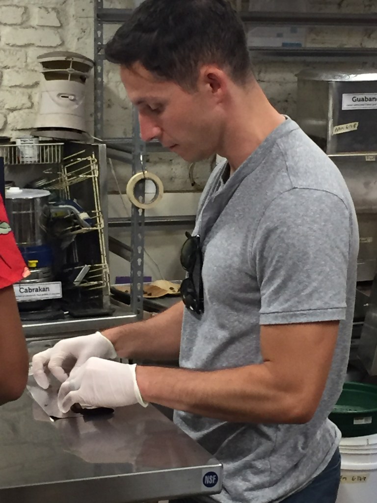 IMG_4378 Published July 15, 2018 at 2448 × 3264 in Madre Chocolate Josh hard at work wrapping his chocolate bar.