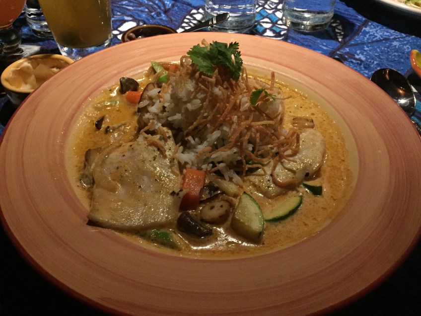 IMG_4611 Published October 10, 2018 at 3264 × 2448 in Maui: Trip 3 – Days 1 & 2 Ono, Ahi and Kanpachi in Panang Curry with Macadamia nuts, banana, sambal and mango chutney