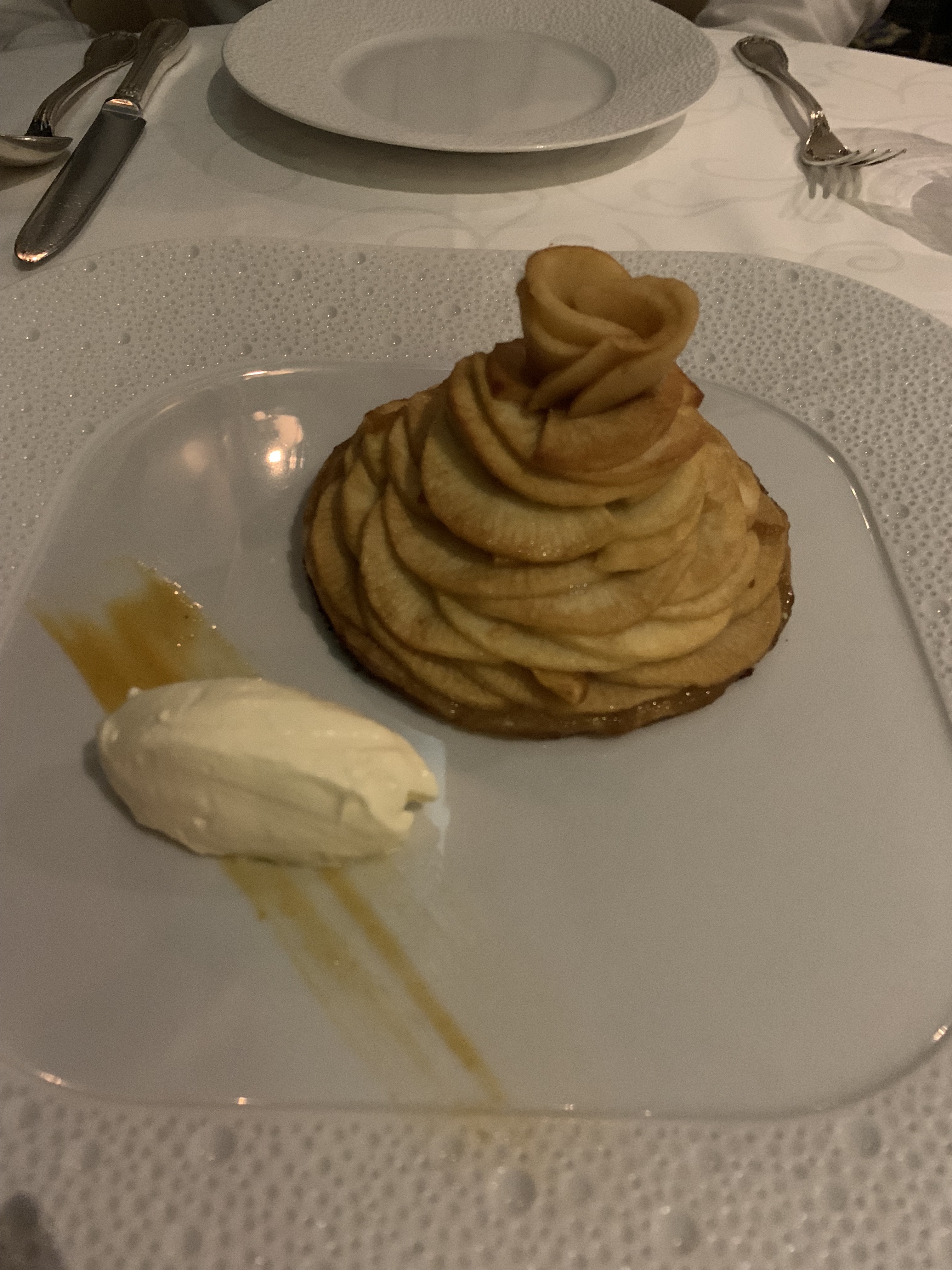 IMG_1548 Published December 27, 2018 at 3024 × 4032 in Cruise: Honolulu, Hilo, & Days at Sea Fancy apple tart dessert. Just as delicious as it looks!