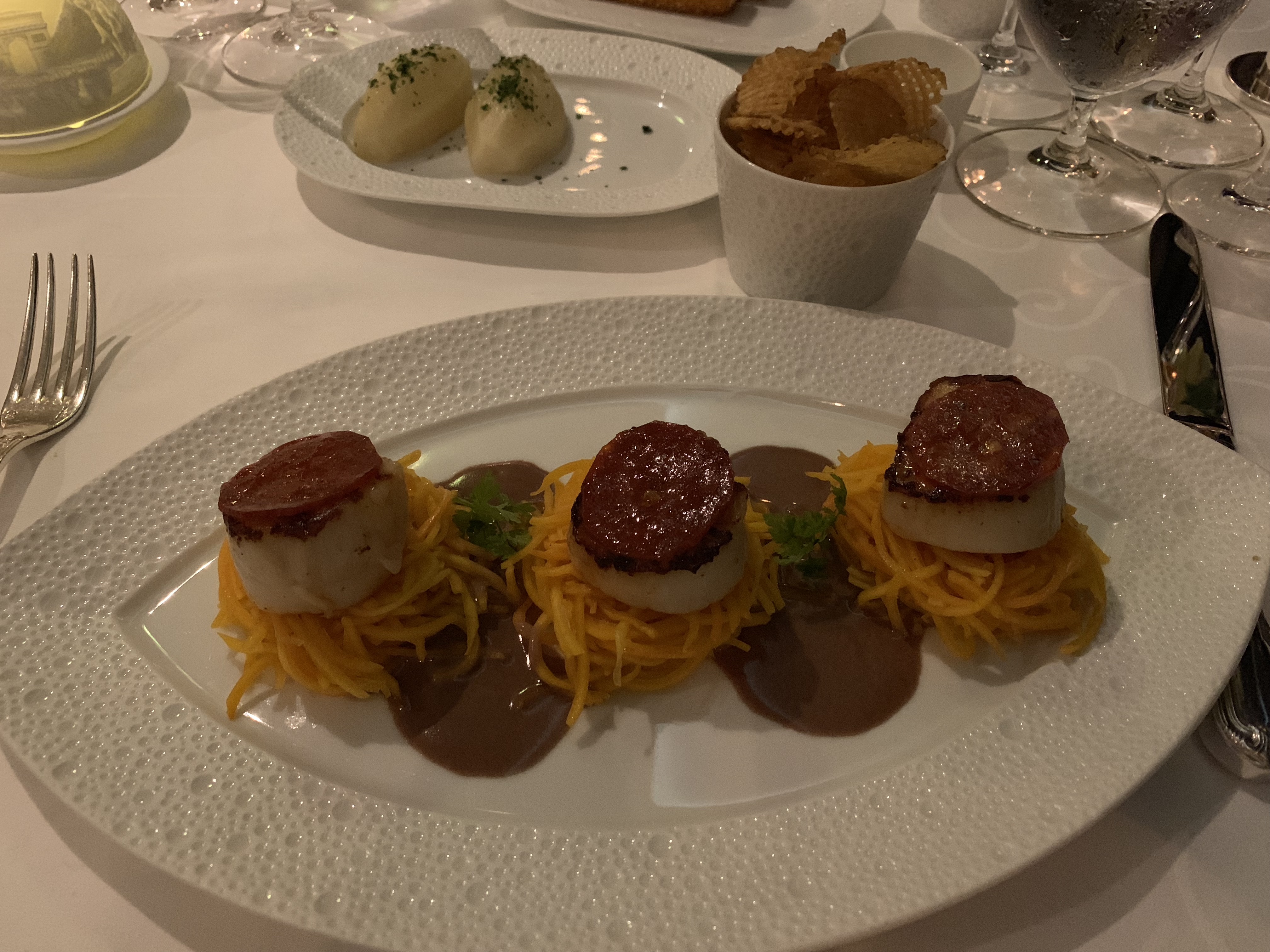 IMG_2328 Published December 27, 2018 at 4032 × 3024 in Cruise: Honolulu, Hilo, & Days at Sea Josh’s chorizo scallops.