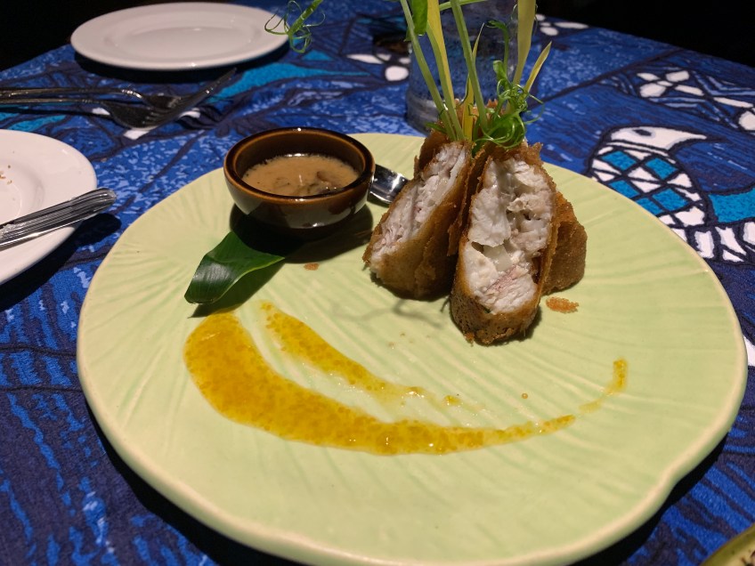 img_4486 Published January 11, 2019 at 4032 × 3024 in Maui: Trip 4 Crispy Mahi-Mahi Rolls with poha berry and Hamakua mushroom brandy sauce
