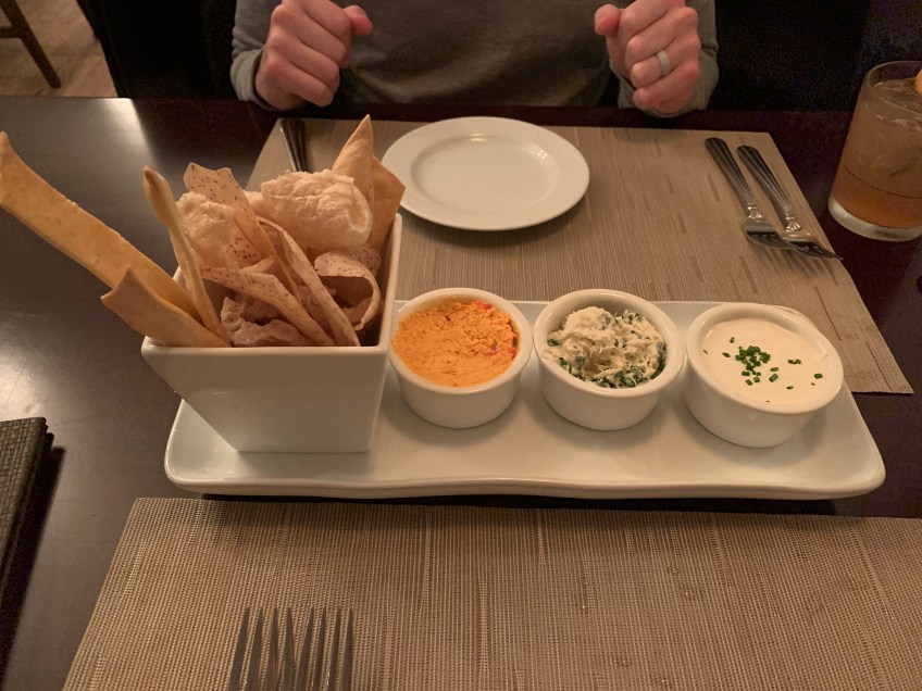 IMG_3203 Published February 8, 2020 at 4032 × 3024 in Lanai: Trip 3 House-made chips and crackers with crab dip, pimento cheese dip, and shallot crème fraîche.