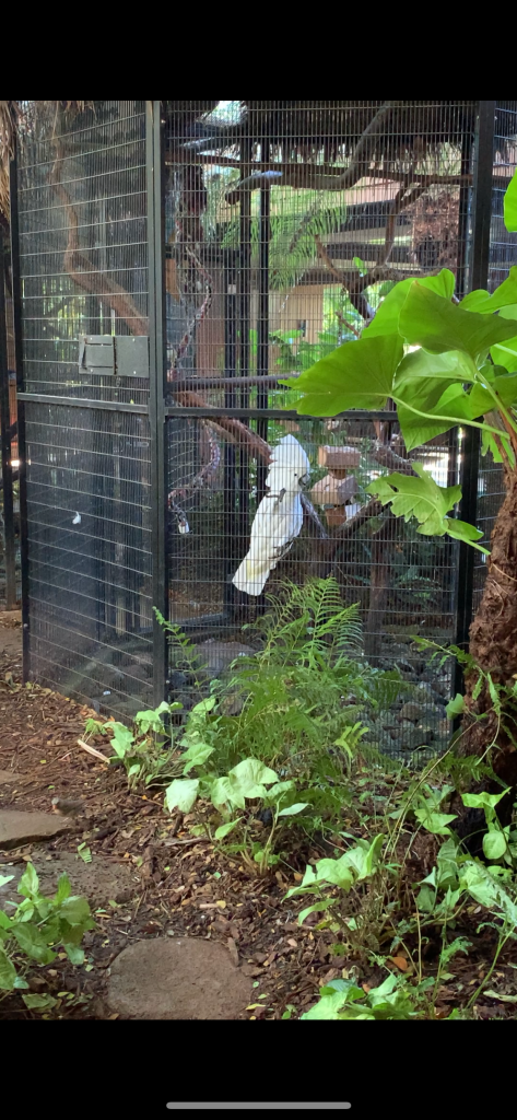 IMG_8911 Published February 8, 2020 at 1125 × 2436 in Lanai: Trip 3 These beautiful birds are rescue birds. They greet you on your way to your room and say “hello” among other things.
