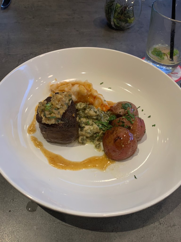 IMG_2243-preview Published April 3, 2020 at 3024 × 4032 in GOEN Dining + Bar 4th Course: Garlic & Peppercorn Crusted Filet Mignon & Miso Butter Poached Lobster Tail | Creamed Sesame Spinach